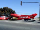 Today started off with an unusual sighting - as we were turning off the Highway 84 Extension onto Marsh Road, we spotted the Smirnoff MiG on its tractor-trailer. Apparently the driver didn't think he had enough room to make the left turn safely, so he decided to pull off to the right, then cut over the straight-ahead lane *and* the two left turn lanes in order to reach the 101 onramp...We didn't stick around long enough to see if the maneuver was successful, zooming off instead to Tumbleweed at Redwood Seaport as soon as the left-turn light changed to green.